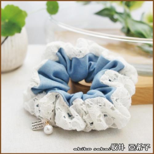 『坂井.亞希子』簡約淑女藍白花紋蕾絲珍珠髮圈
