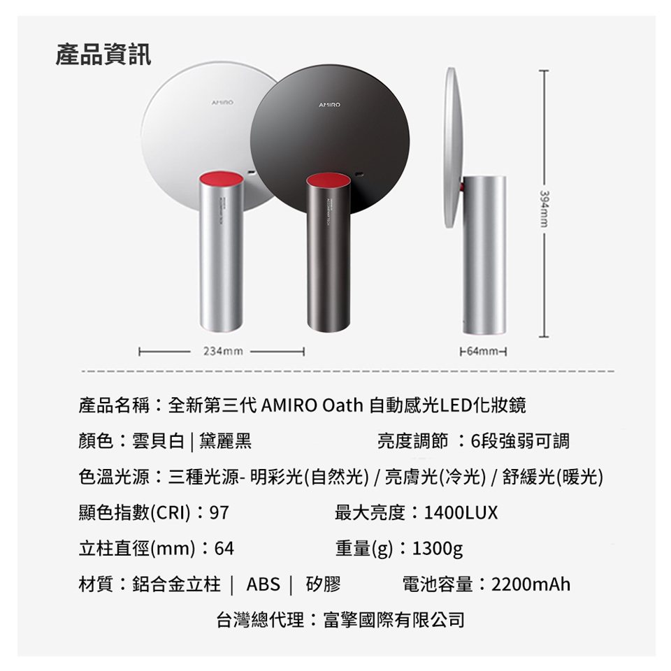 產品名稱: 全新第三代AMIRO Oath 自動感光 LED化妝鏡(國際精裝彩盒版)