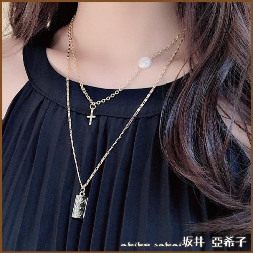 『坂井.亞希子』十字架珍珠人像浮雕設計雙層項鍊
