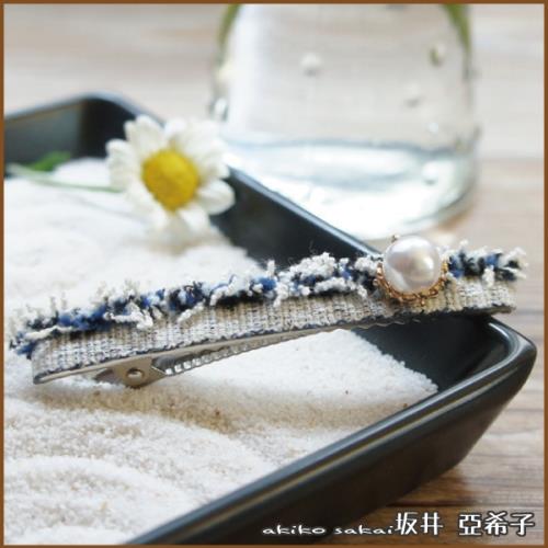 『坂井.亞希子』小香風珍珠牛仔布造型髮夾