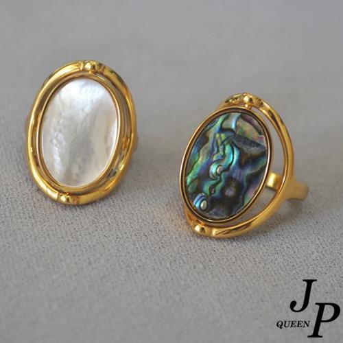 【Jpqueen】雙面幻鏡旋轉貝殼黃銅鍍金指環戒指(雙色戒圍可選)