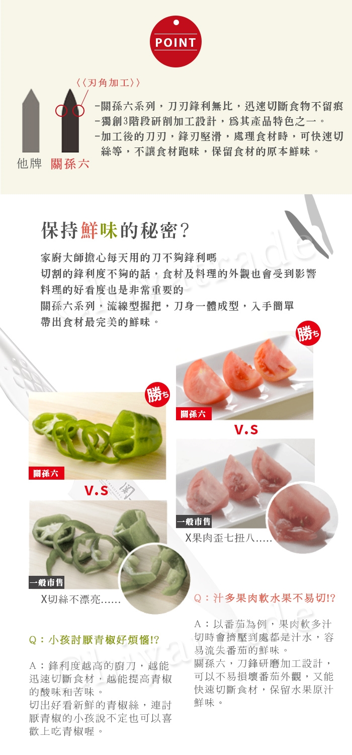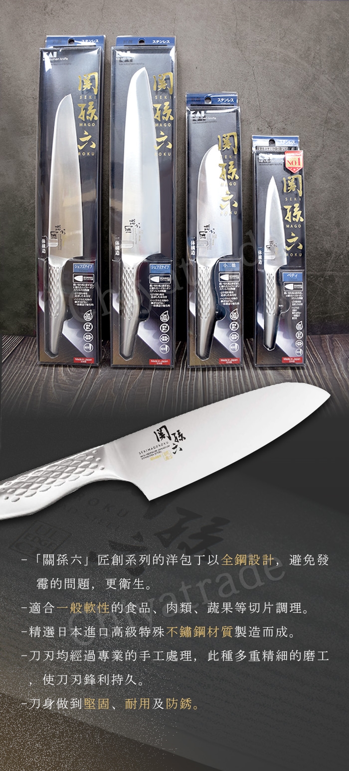 秉持鎌倉時代著名刀匠—關孫六的製刀精神,作工精細並具獨特藝術性,其刀面鋒利度更是上品之選。