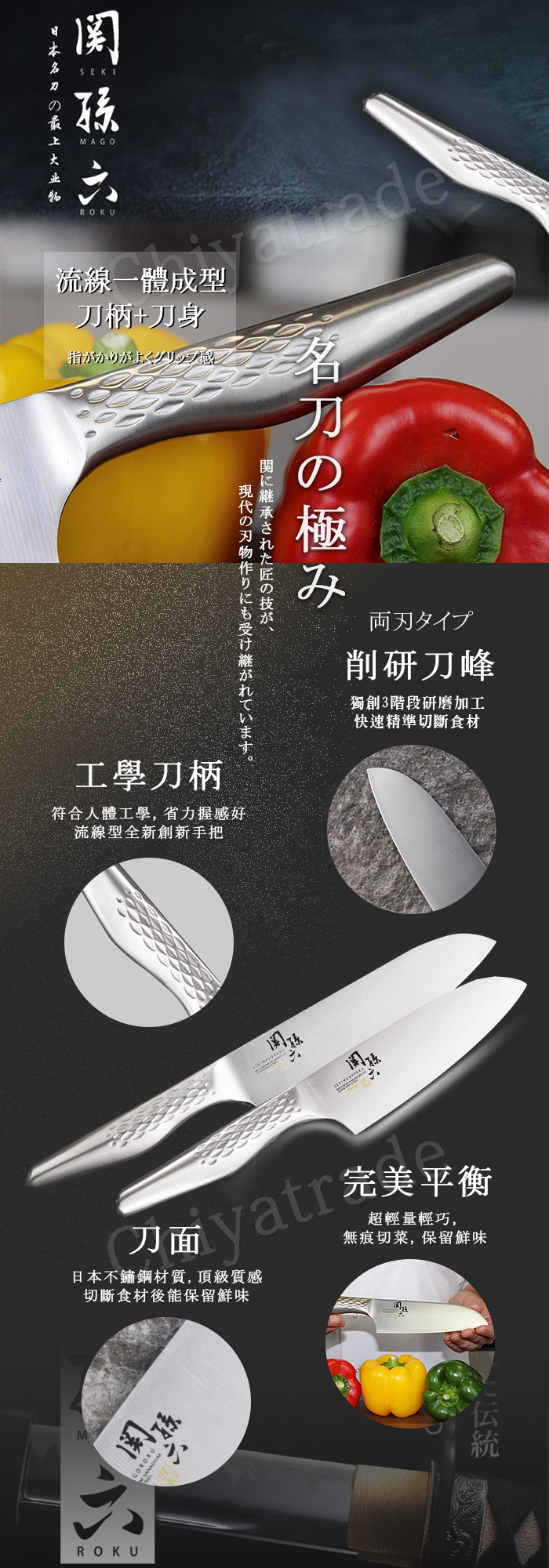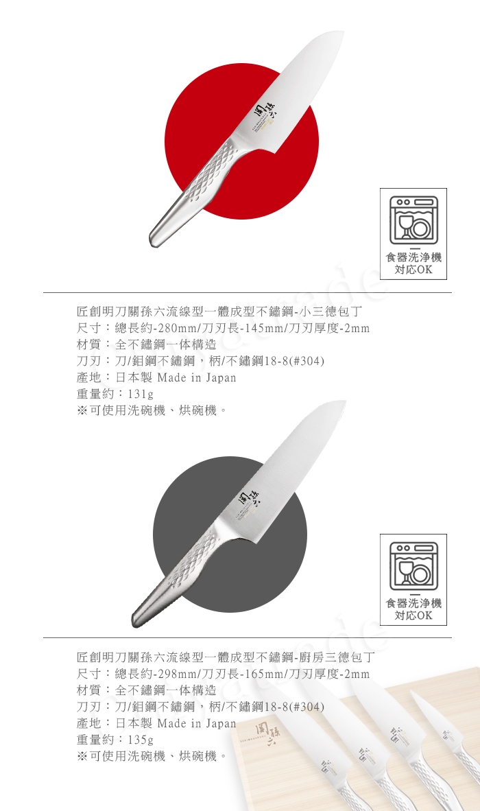 「關孫六」匠創系列的三德刀以全鋼設計,更衛生。