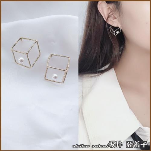 『坂井.亞希子』幾何鏤空正立方體珍珠點綴耳環