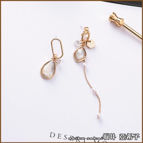 『坂井.亞希子』925純銀優雅水晶掛飾不對稱珍珠垂墜耳環