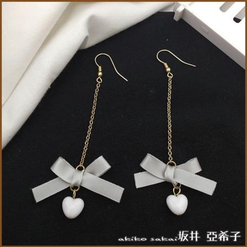 『坂井.亞希子』日系甜美少女蝴蝶結愛心垂墜耳環