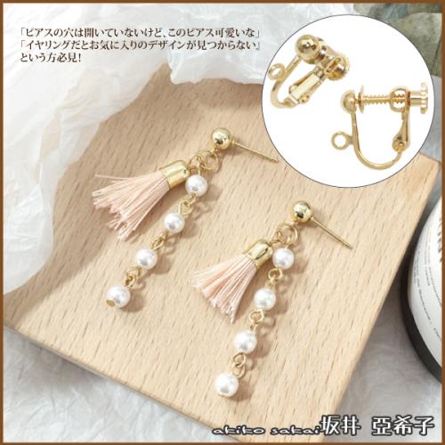 『坂井.亞希子』日系甜美文藝風格珍珠小流蘇耳環 -耳夾款