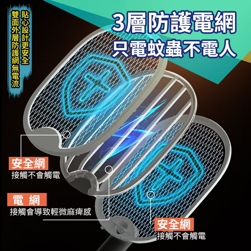 此時電網帶高壓, 揮動電蚊拍, 蚊蟲接觸到電網立即被擊斃 。鬆開高壓開關