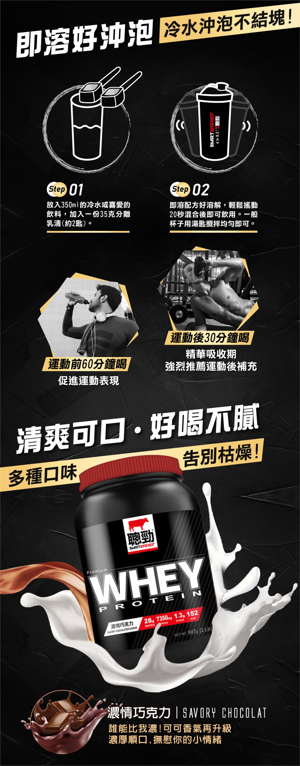 將2匙35公克紅牛聰勁即溶乳清蛋白,加入350C.C.冷水或喜愛的飲料中,搖動混合後即可飲用。