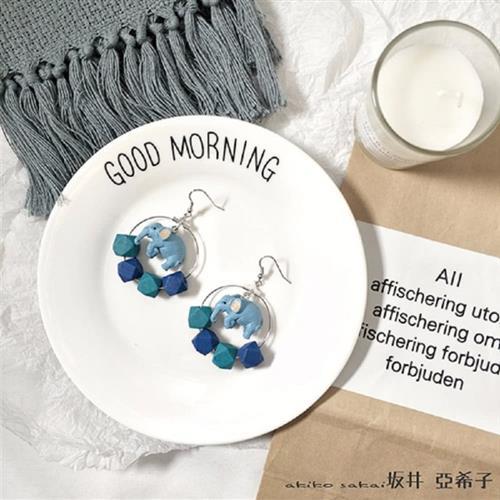 『坂井.亞希子』童趣風格大象馬戲團藍色大象耳環 -耳勾款