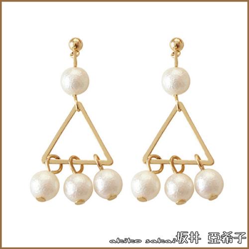 『坂井.亞希子』日系簡約三角造型棉珍珠垂墜耳環