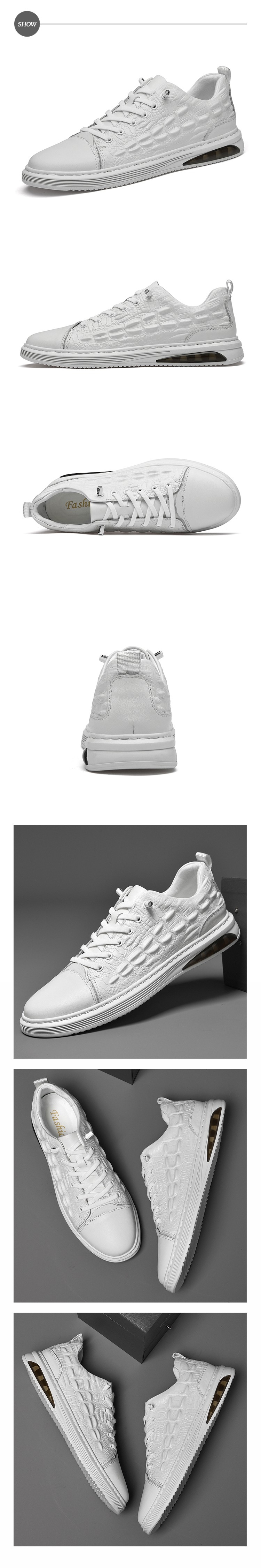 【Adonis】休閒鞋 真皮休閒鞋/真皮頭層牛皮立體鱷魚皮紋拼接時尚休閒鞋 -男鞋 白