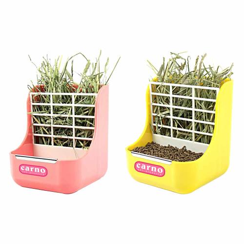 CARNO卡諾-固定式2合1草架餵食盒(黃色/粉色)