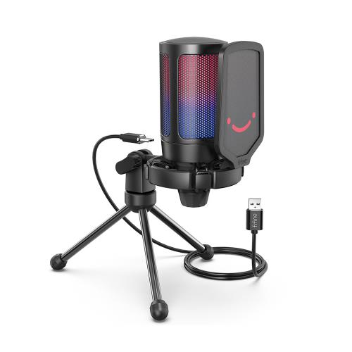 FIFINE A6V USB心型指向電容式RGB麥克風
