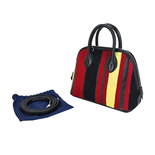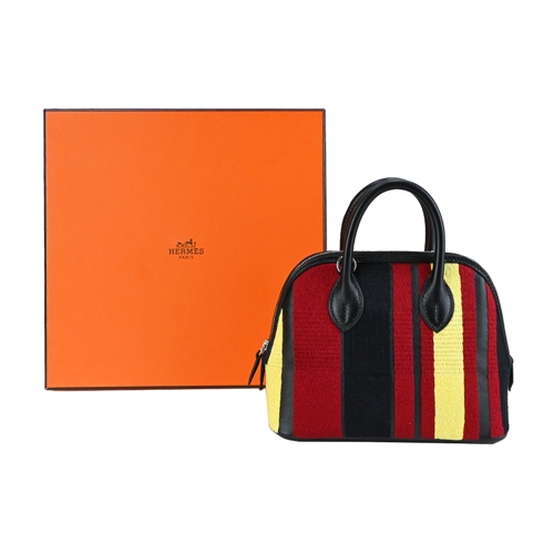 Hermes 愛馬仕Bolide 1923 MINI 20cm Swift 牛皮編織柏莉包(AA黑X波爾多紅/D刻/銀釦)