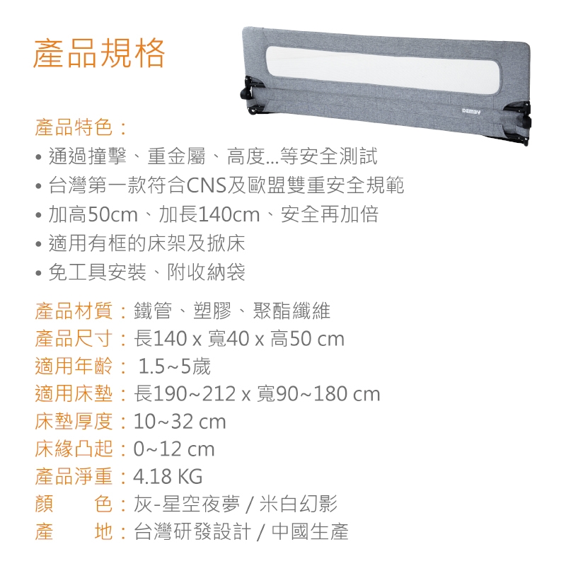 DEMBY 兒童夢境床邊護欄/通過 4 大安全檢驗