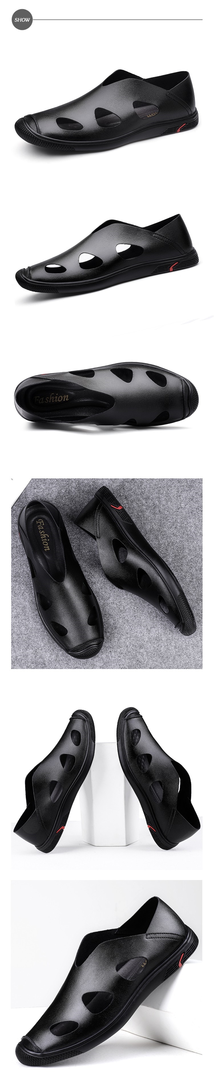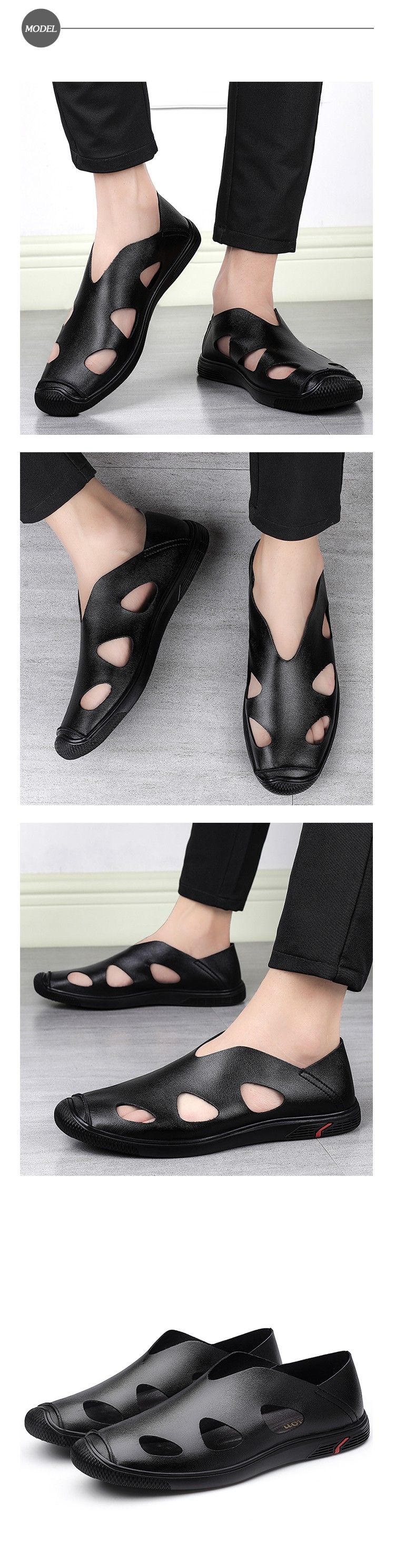 【Kiron】休閒鞋 包頭休閒鞋/護趾機能包頭縷空兩穿法舒適休閒鞋 -男鞋 黑