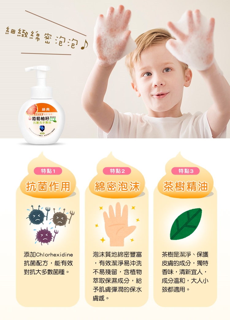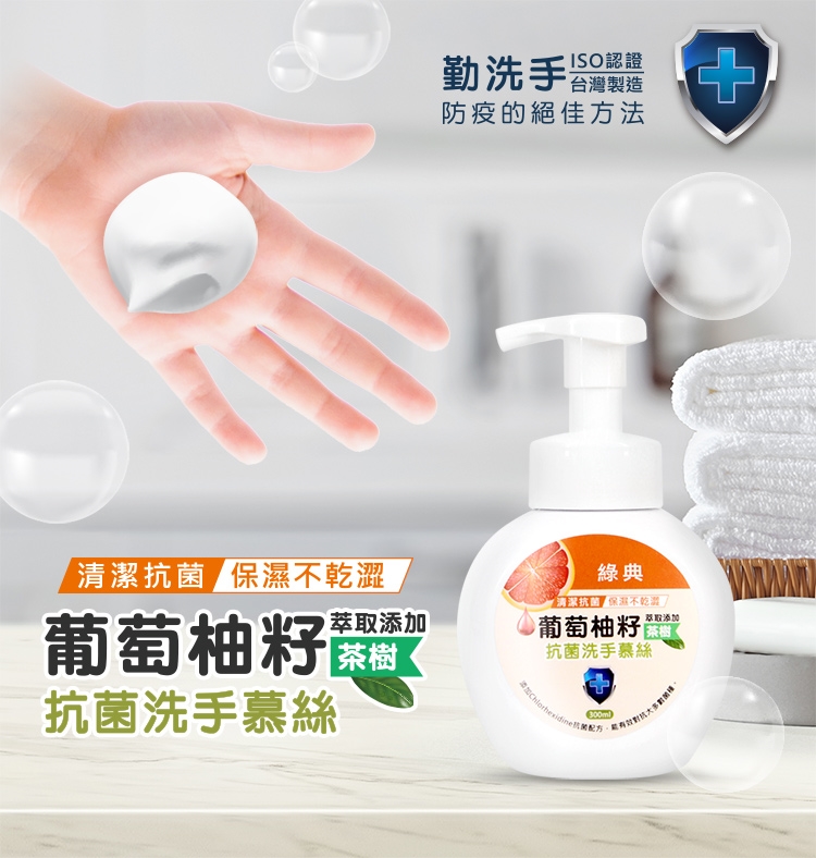 葡萄柚籽茶樹保濕抗菌洗手慕斯泡泡洗手乳300ml x 4瓶(台灣GMP工廠製造)