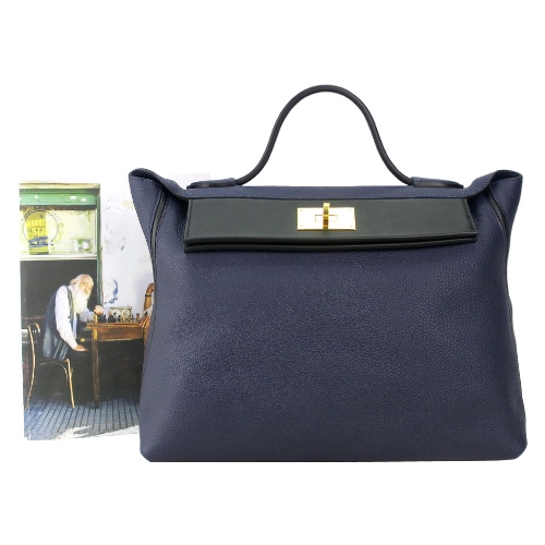 Hermes 愛馬仕24/24 35CM Togo 牛皮手提包(D刻/2Z午夜藍/金釦)