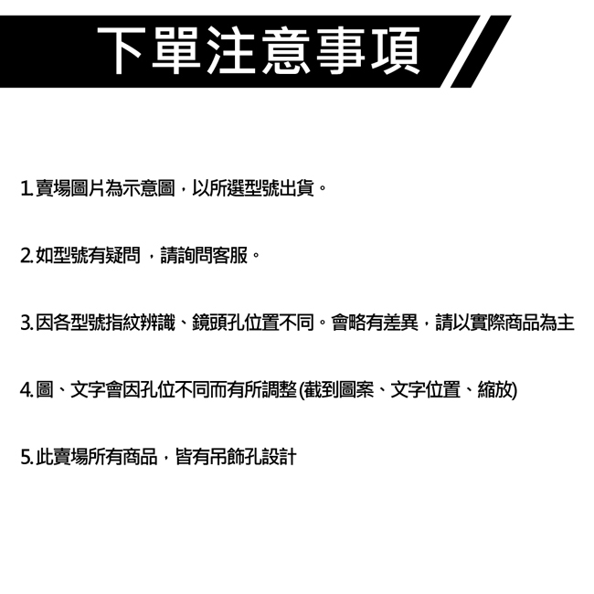 5.因各廠牌手機螢幕解析度不同,會略有色差,顏色及開孔孔位請以實際收到商品為準