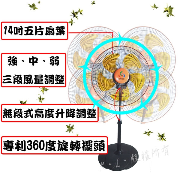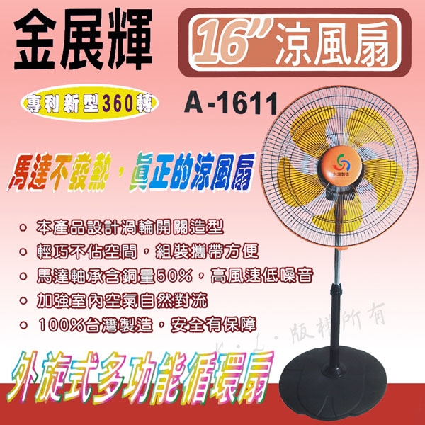 金展輝 16吋 3段速8方吹電風扇 A-1611