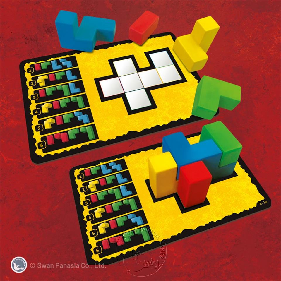 回合開始時拿取一張新的任務板,並擲骰決定使用哪一組幾何積木來堆疊;