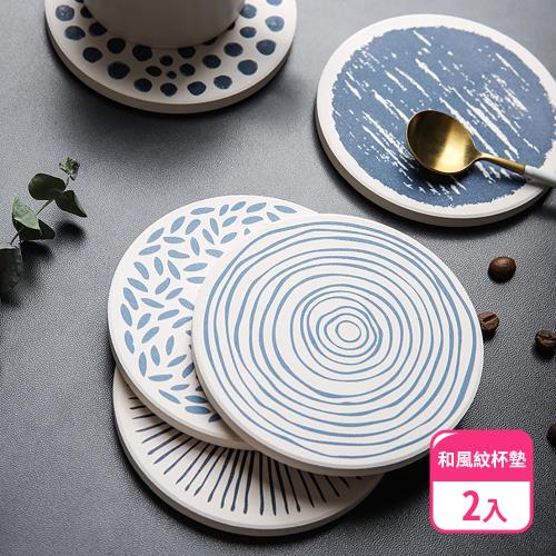 【阿莎&布魯】和風花紋吸水珪藻土杯墊 二入