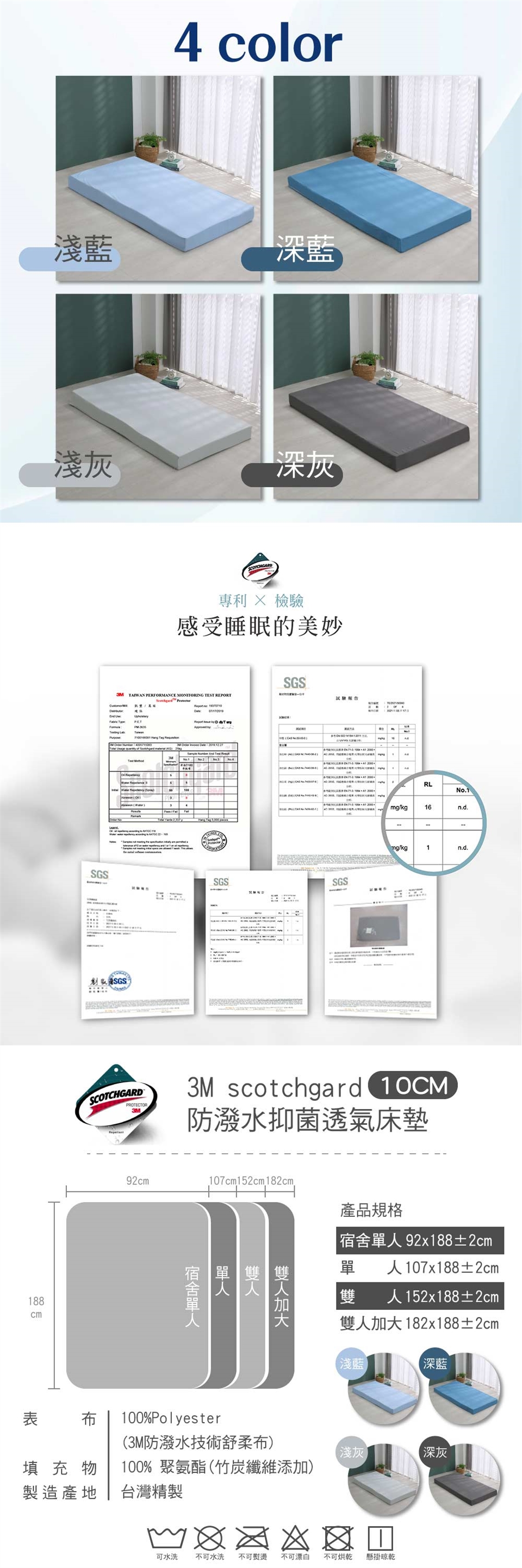 洗滌方式:『表布』可水洗、請使用中性洗潔劑清洗,禁用漂白劑、吊掛晾乾