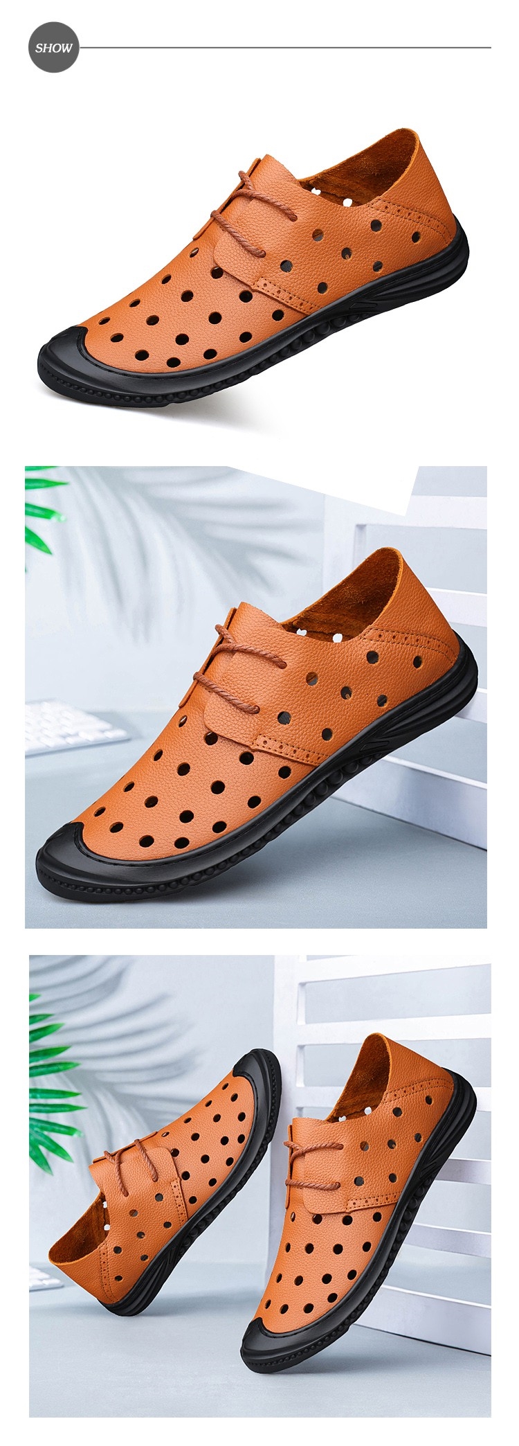 【ANSEL】休閒鞋 真皮休閒鞋/真皮頭層牛皮護趾機能設計透氣沖孔繫帶休閒鞋 -男鞋 棕