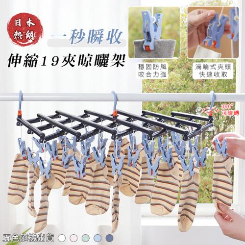 日本熱銷一秒瞬收伸縮19夾晾曬架 襪子晾曬夾 曬衣架