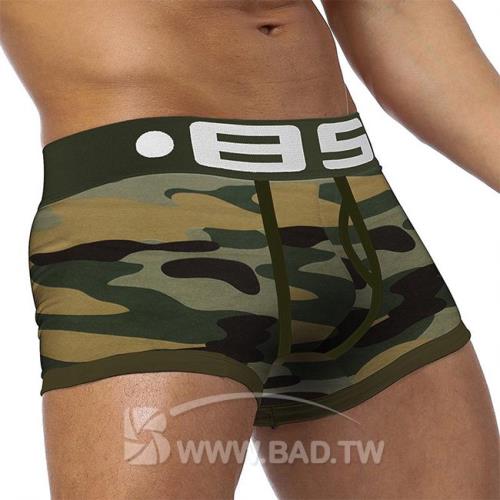 壞男情趣 《帥氣寬腰邊軍風迷彩棉低腰四角褲》綠 [ M / L / XL / 2XL ] 健身/慢跑/運動/渾圓翹臀/內褲/男內褲/男生四角內褲