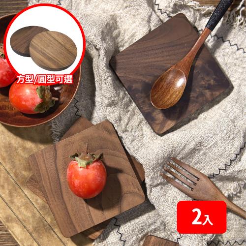 【FUJI-GRACE】黑胡桃木頭杯墊 隔熱墊 (方型/圓形可選) 2入