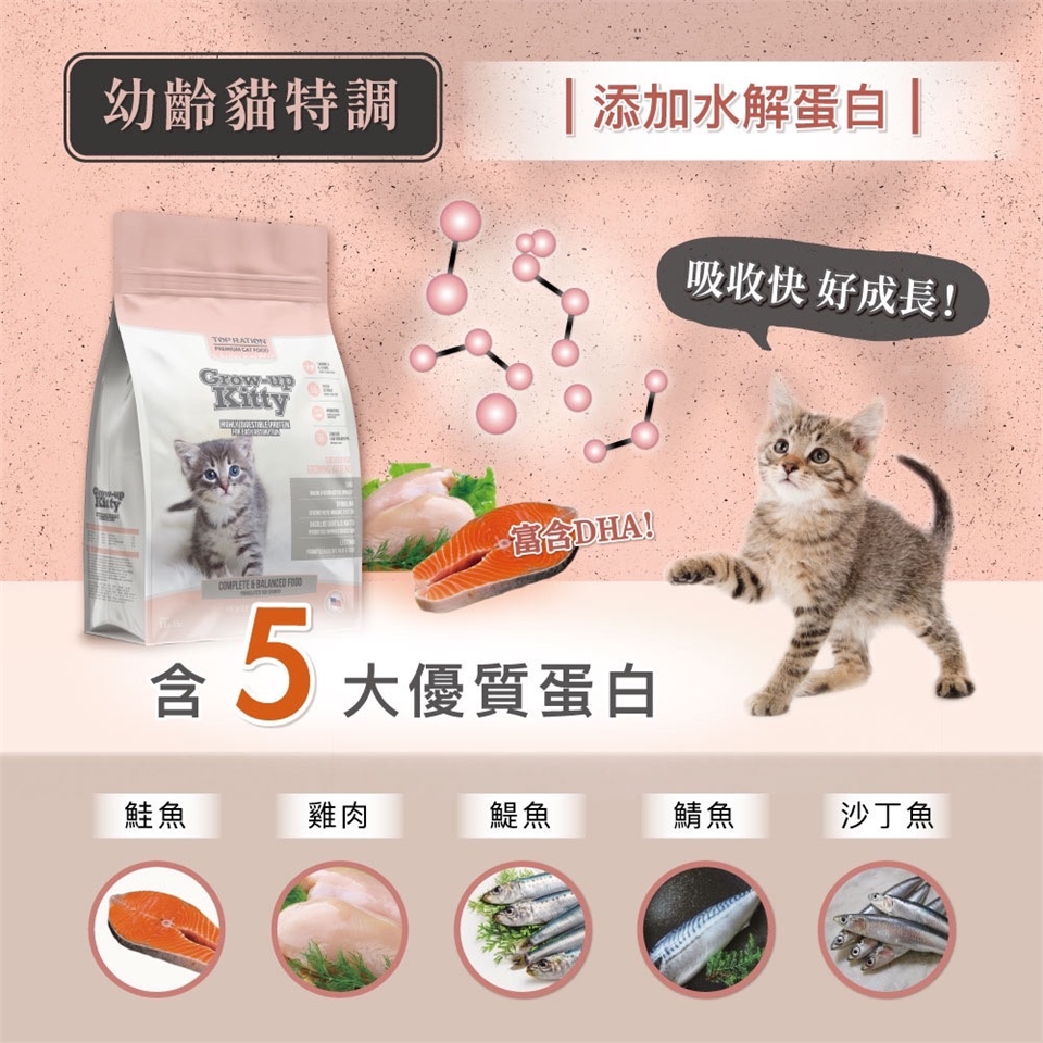 成分分析:粗蛋白(最少)34%、粗脂肪(最少)15%、粗纖維(最多)3%、水份(最多) 8%、灰份(最多)7%鈣(最少)1.0%、磷(最少)0.9%、牛磺酸(最少)0.1%