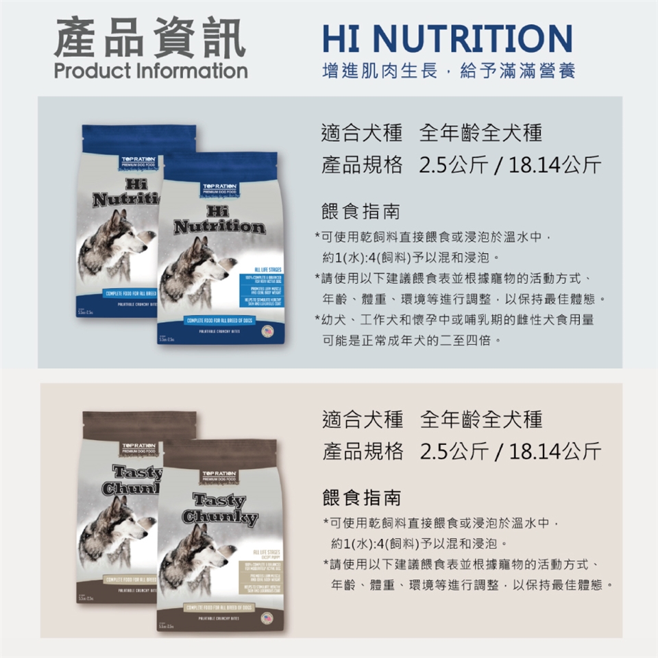 HI NUTRITION 增進肌肉生長,能量補給(嚴選火雞+羊肉)適合犬種適合全年齡全犬種成份:火雞肉粉,骨粉,黃玉米粉,米糠,小麥粉,羊肉粉,雞脂 肪(用天然混合生育酚腌制),磷酸二鈣,維生素E補充劑,氧 化鋅,硫酸銅,硫酸錳,氧化錳,生物素,維生素A醋酸鹽,酸 钙,維生素B12補充劑,維生素B3,硝酸硫胺,氧化銅,維生素 B6,維生素k,亞硫酸氫鹽複合物(維生素K活性的來源},維生素 D3補充劑,碘化鉀,葉酸,亞硒酸鈉