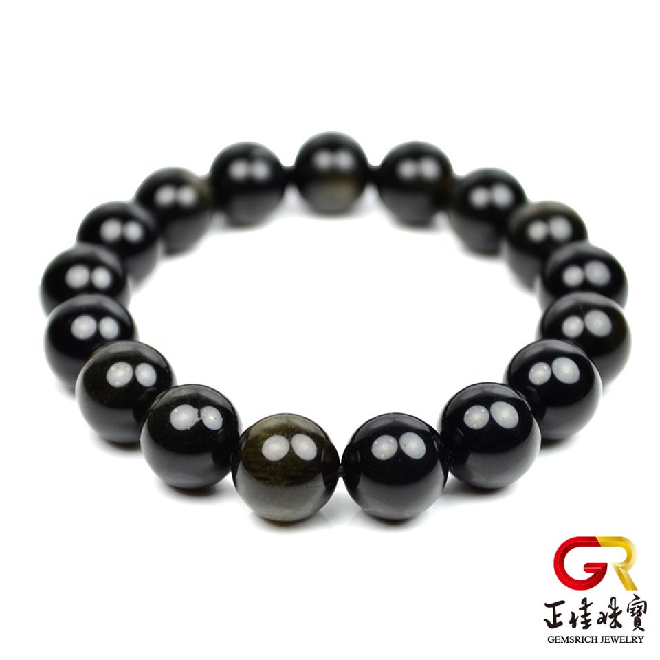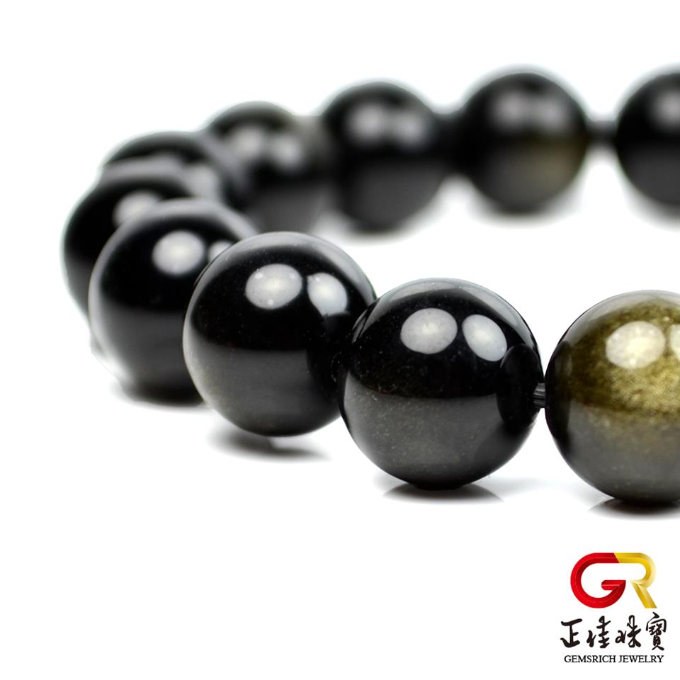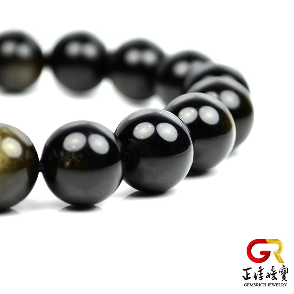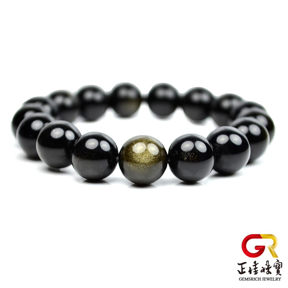 主角:金曜石 太陽金耀石 頂級閃光金曜石手珠 14mm|日本彈力繩