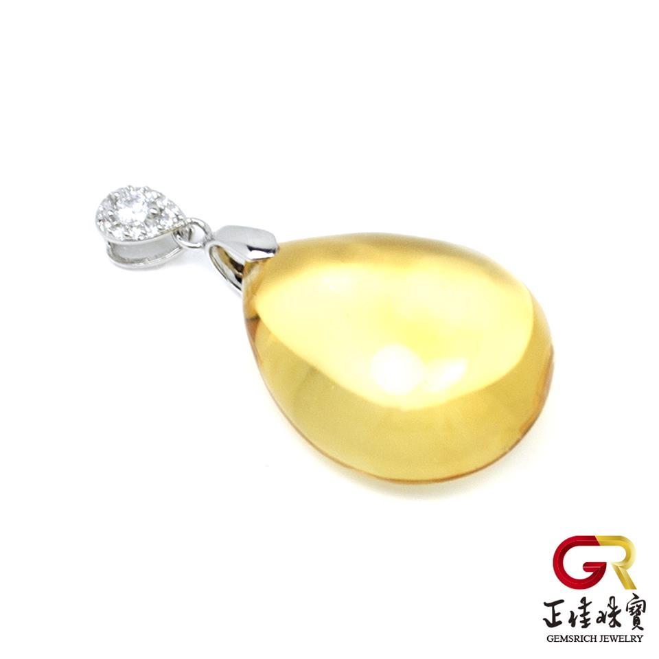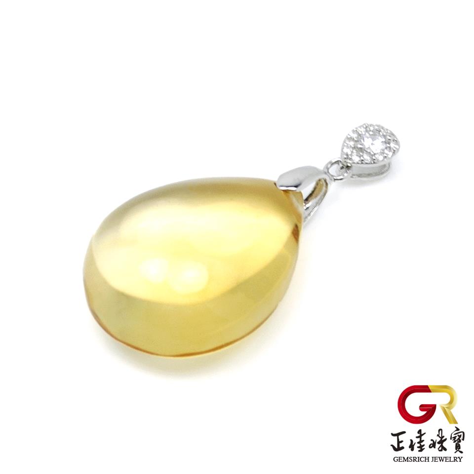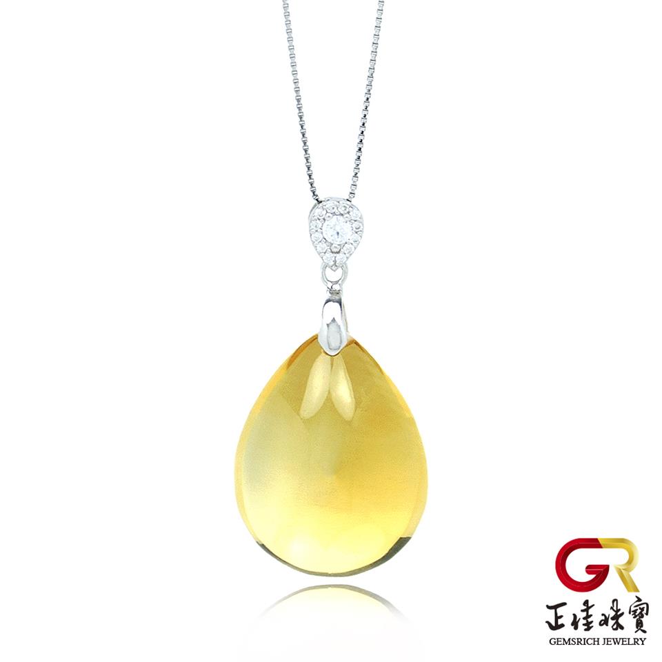 黃水晶 冰質黃水晶水滴吊墜 黃水晶項鍊|925銀白K
