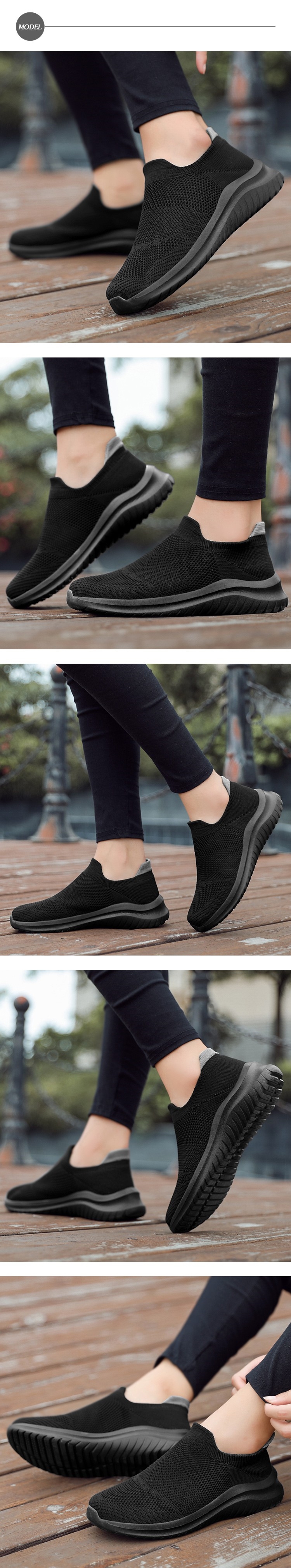 【SPRING】運動鞋 休閒運動鞋 /超輕量撞色飛織襪套設計休閒運動鞋 黑