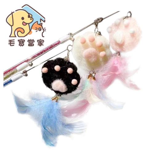 腳掌肉球造型,搭配彩色羽毛,吸引主子注意