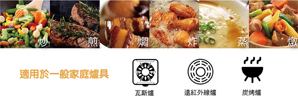 3.複合金材料傳熱效果佳,烹調中或高溫尚未清洗時,避免碰觸鍋身,以免燙傷。
