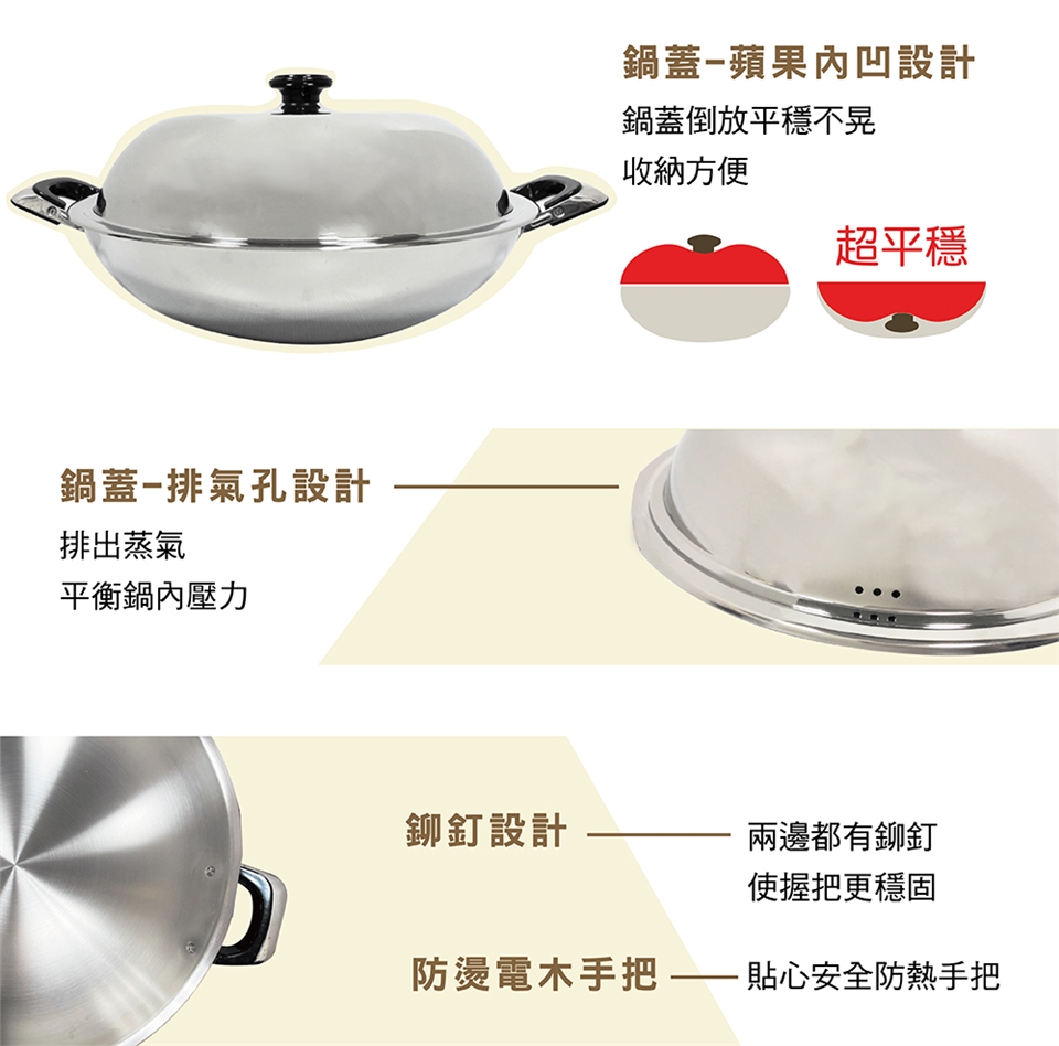 2.請勿敵擊鍋面,以免鍋面產生凹洞,影響烹煮效果及破壞鍋身美觀。