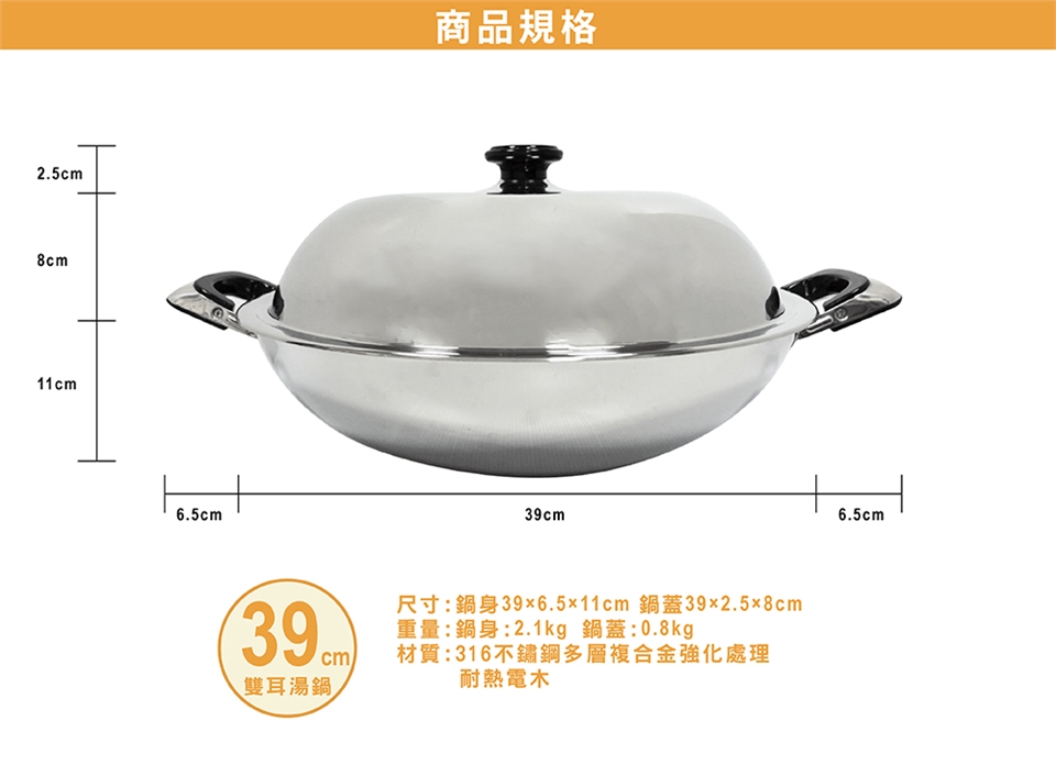 尺寸:鍋身39×6.5×11cm 鍋蓋39×2.5×8cm