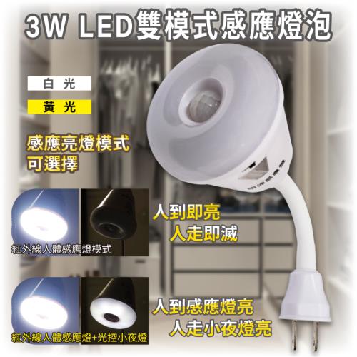 [明沛]3W LED雙模式感應燈(彎管插頭型)-隨意調節所需模式-感應燈-感應燈+小夜燈-白光 黃光可選-MP5838
