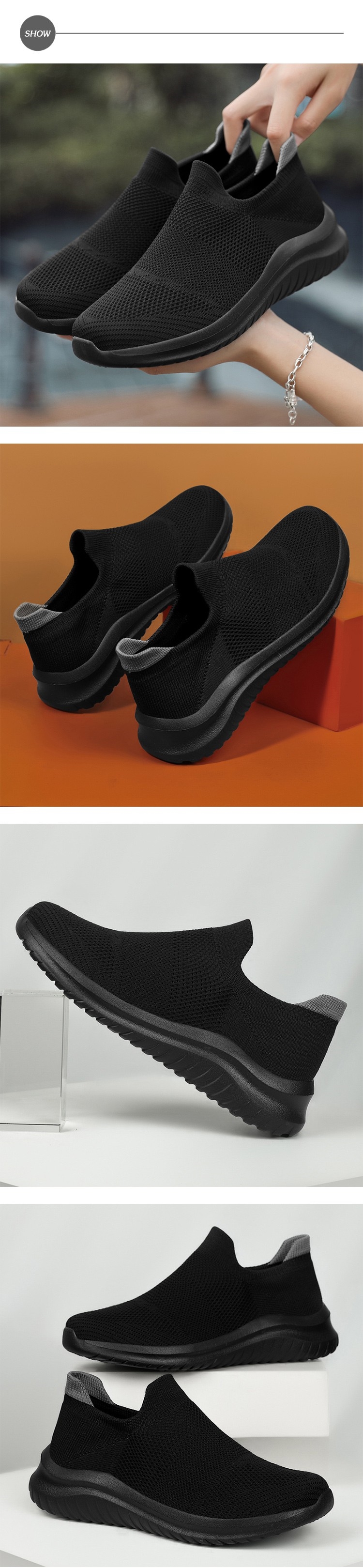 【SPRING】運動鞋  休閒運動鞋 /超輕量撞色飛織襪套設計休閒運動鞋 - 男鞋 黑