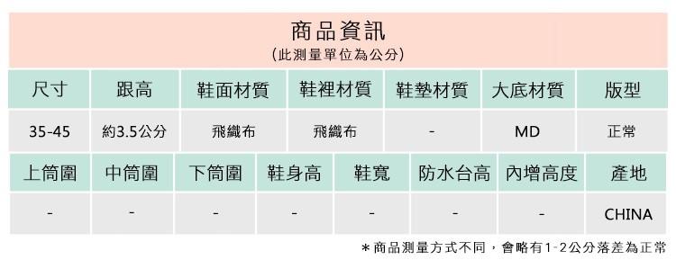 2.鞋類商品依功能及用途之不同,鞋底各有其止滑係數之個別不同,使用鞋類商品請用於正常平坦之路面,非雨鞋或雨靴類商品,請避免穿著於下雨濕滑路面上行走。