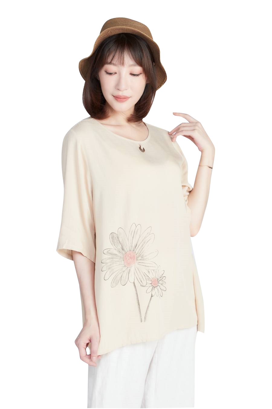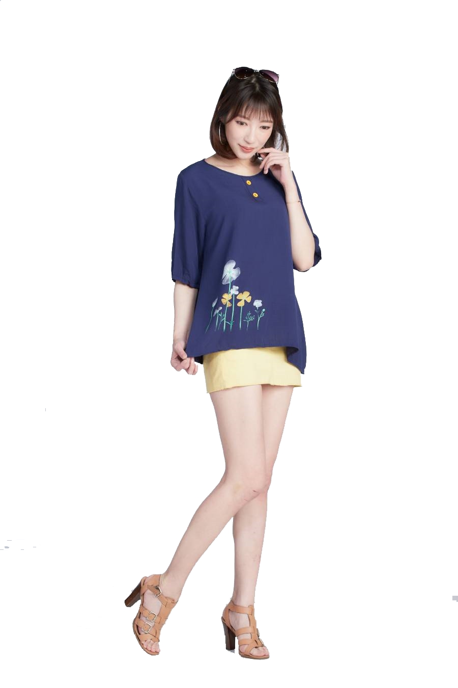 2在炎熱的夏天穿著特別舒適。前方下擺小設計加上特色定位手工印染讓整體多了點巧思與特色簡單卻又不失層次感~~