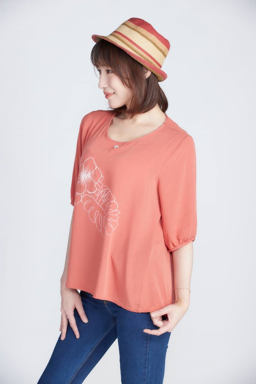3.流行的質感色調,營造微文青感的氛圍 ~五分袖版型修飾手臂線條,簡約的款式隨性搭配下著都迷人有型~搭配休閒褲或牛仔褲著,輕 鬆穿出休閒活力!