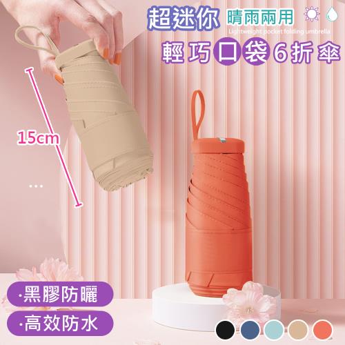 【傢飾美 】超迷你口袋晴雨兩用折疊傘/超輕收納 (5色任選/黑膠防曬遮陽傘/高效防水雨傘/6折傘)