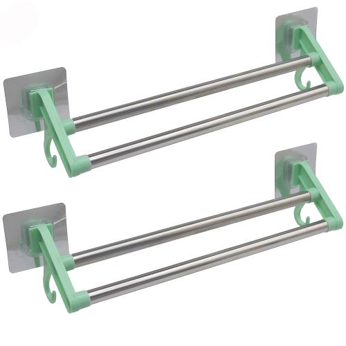 月陽超值2入37cm無痕貼雙桿不鏽鋼掛物架毛巾架置物架(D37092)