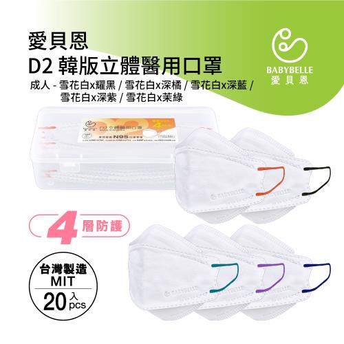 【愛貝恩】MIT 雙鋼印D2韓版成人醫用口罩-附精美收納盒(20入/盒)