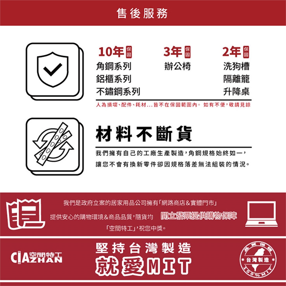 5》免費保固範圍包含本體扭曲或凹陷、結構損壞,以上若有人為損壞皆不保固,令不保固本體之外損壞,如掉漆與髒汙。